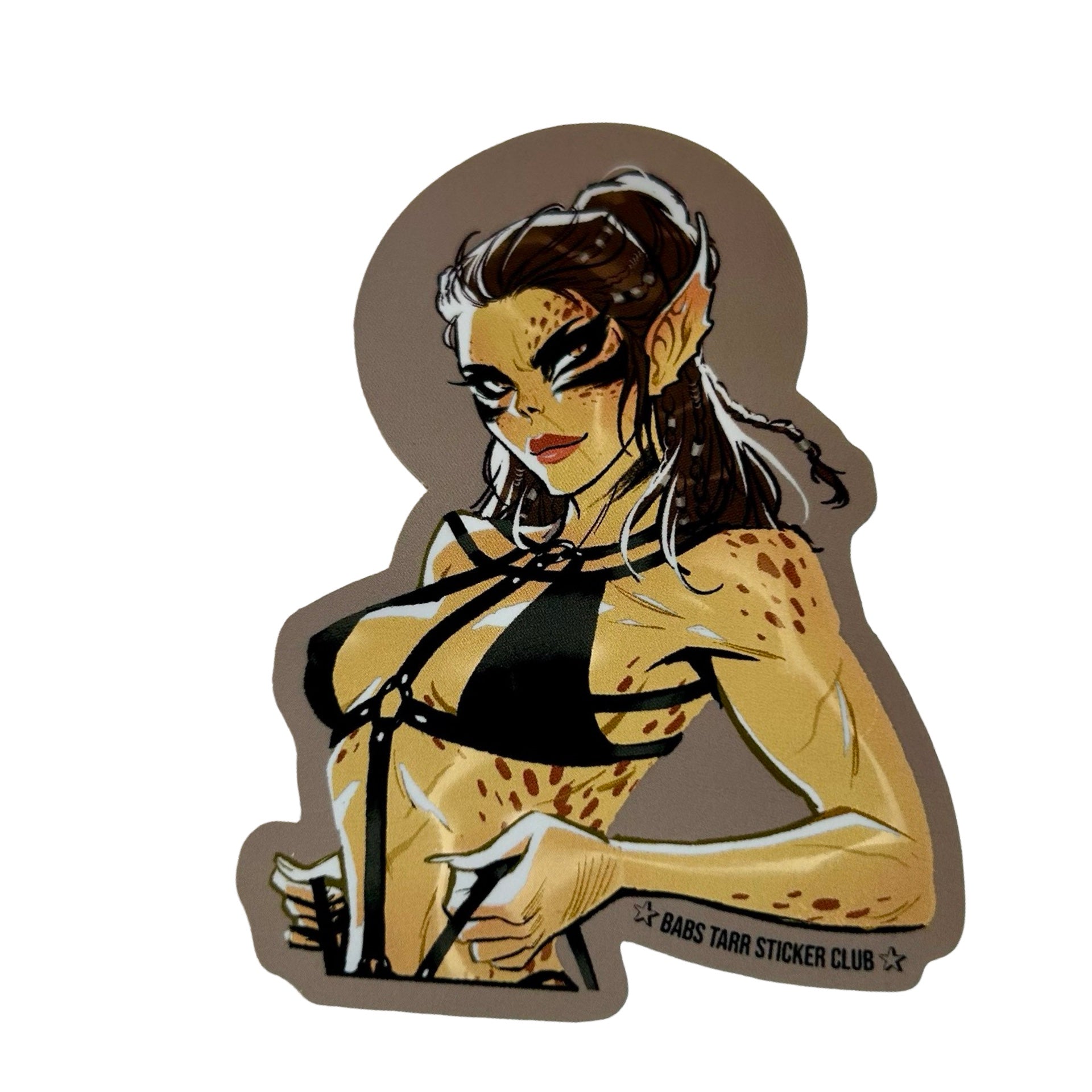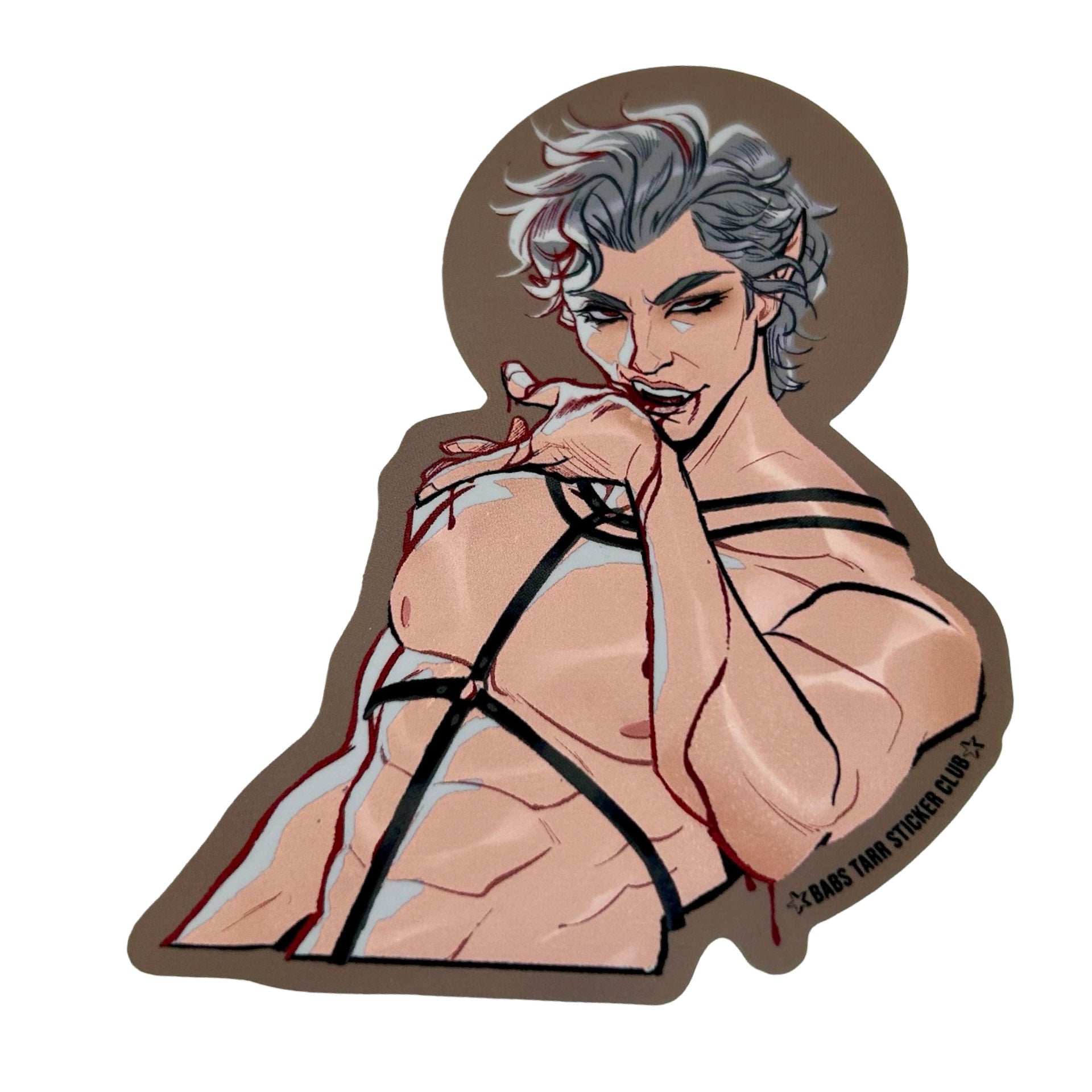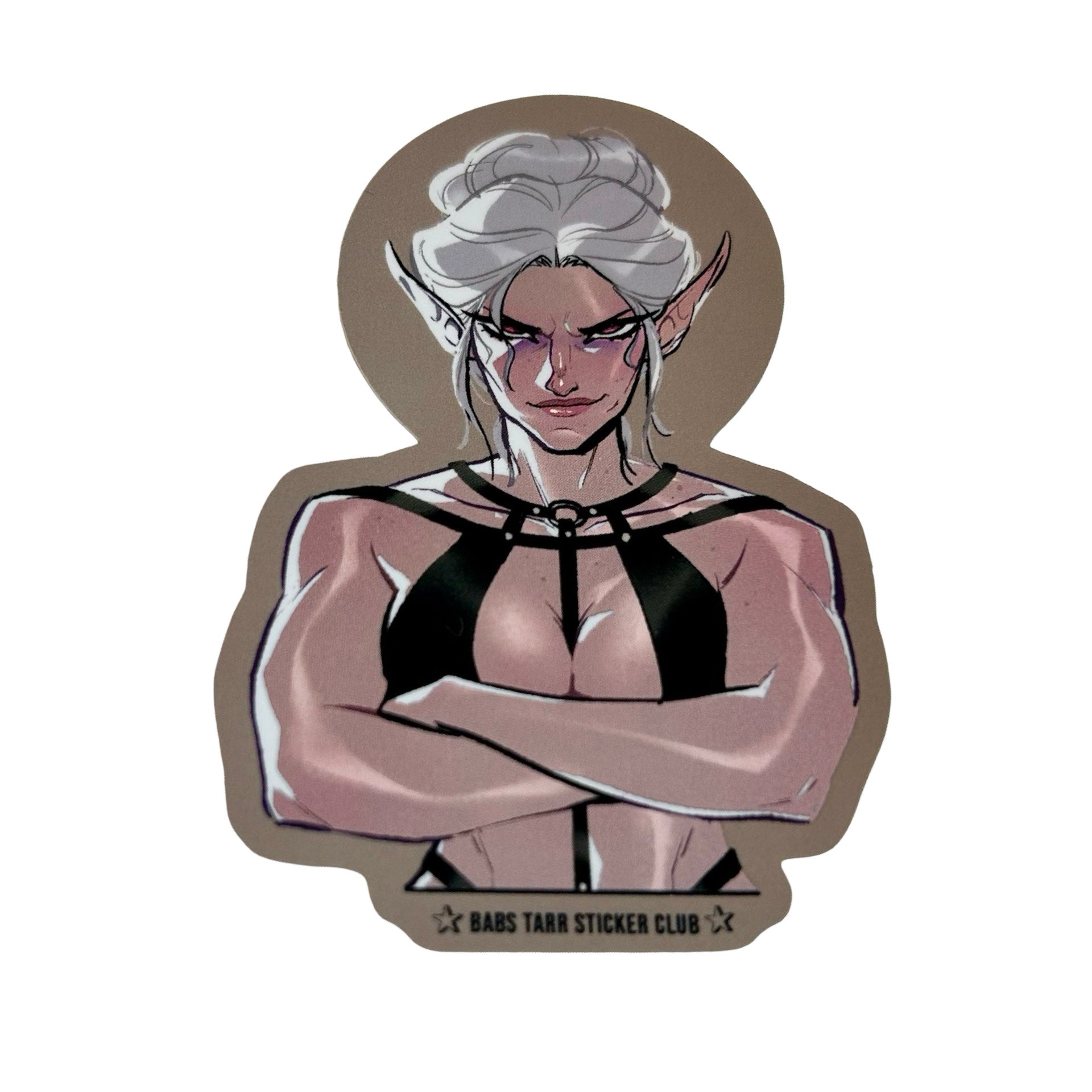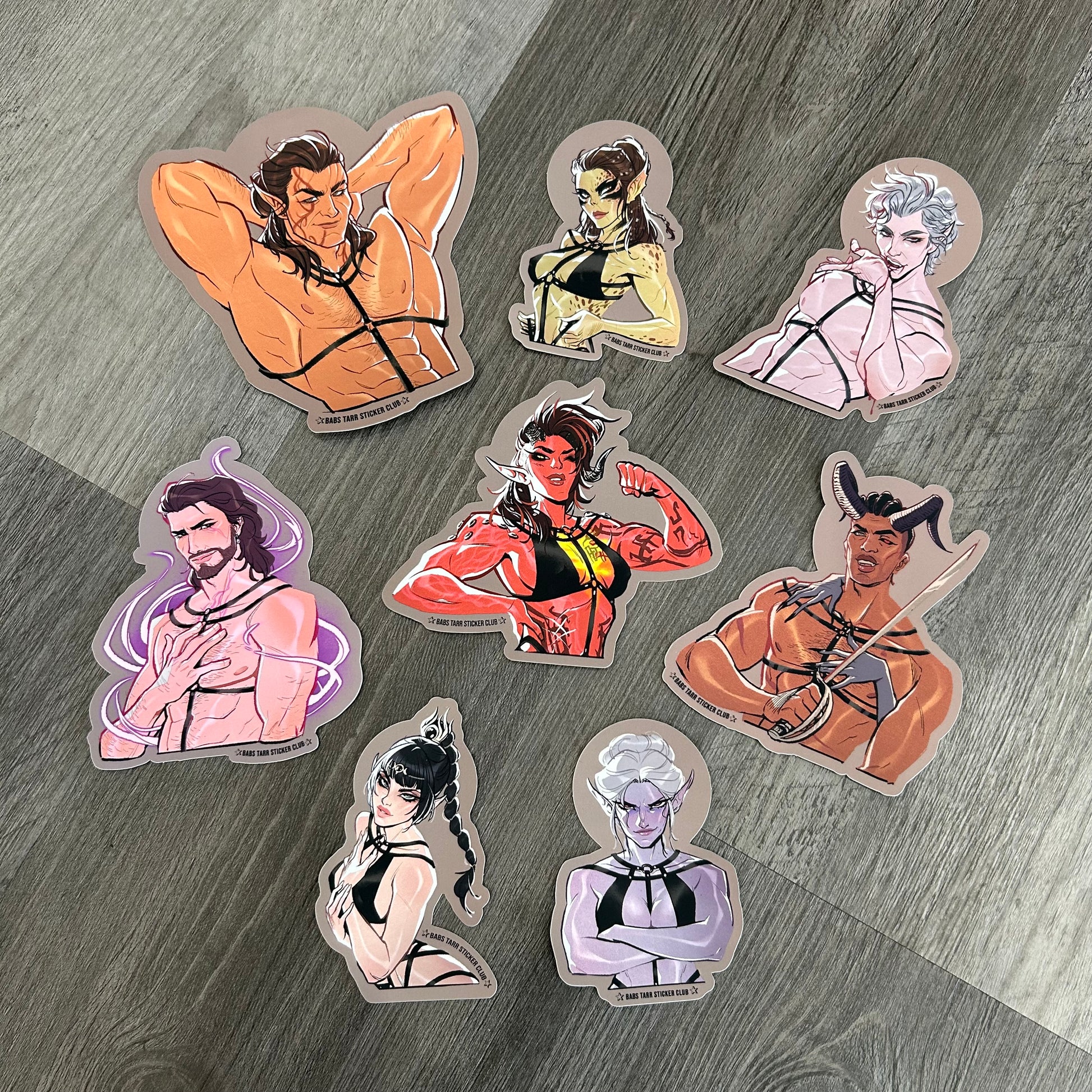 Dress all the Baldur's Gate companions in a skimpy outfit? Say less. We appreciate you, Babs. These water-resistant stickers have a matte sheen finish and are sure to be a conversation starter adhered to your water bottle or laptop. Each sticker measures about 4" tall except for Halsin 5".