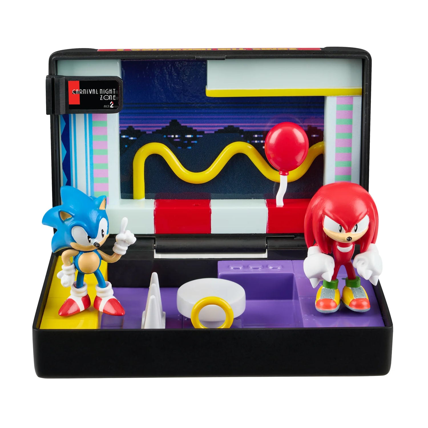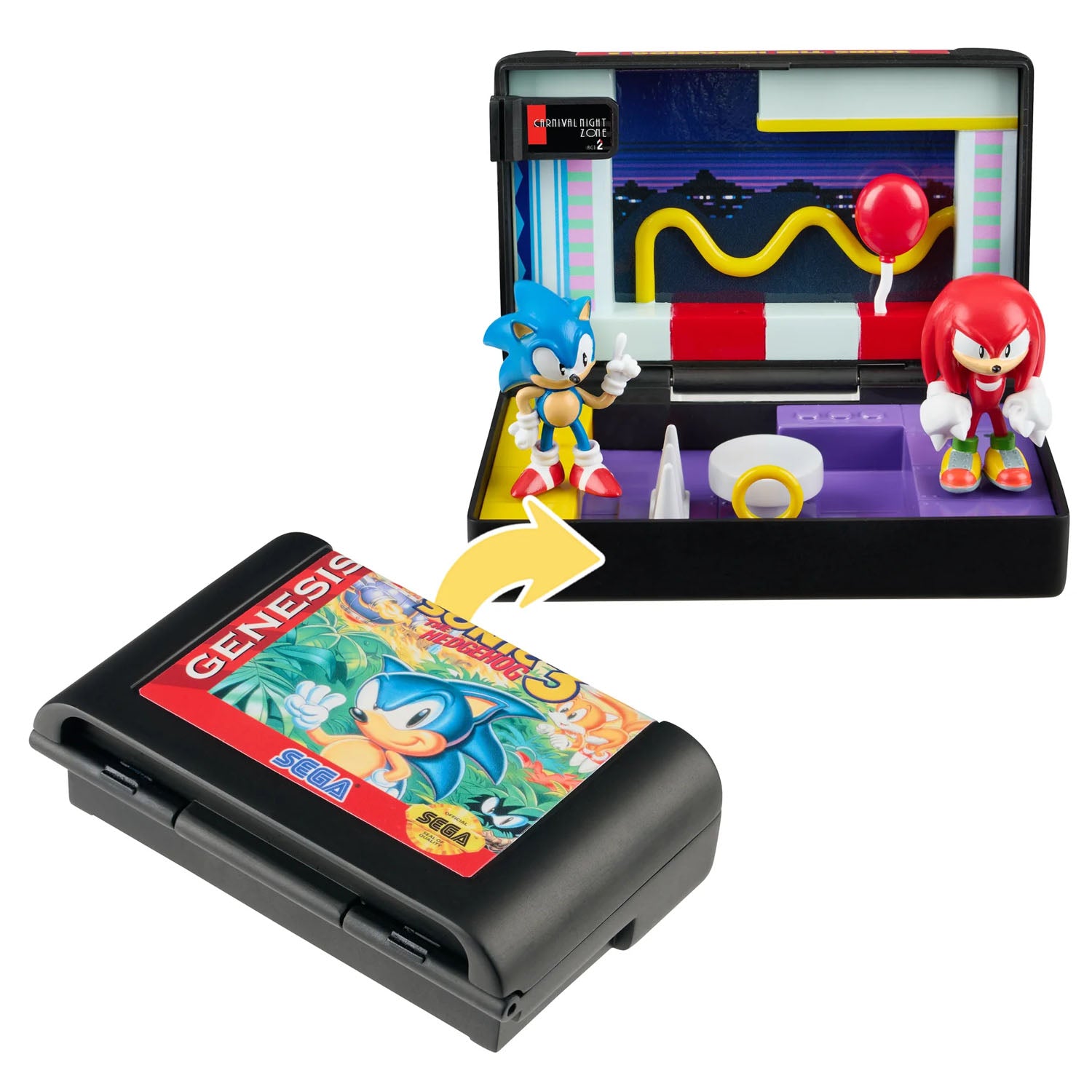A collectible diorama of Sonic the Hedgehog 3’s Carnival Night Zone housed inside a retro Sega Genesis cartridge. Includes mini Sonic and Knuckles figures, a buildable scene with molded elements, and peggable parts for display or play.