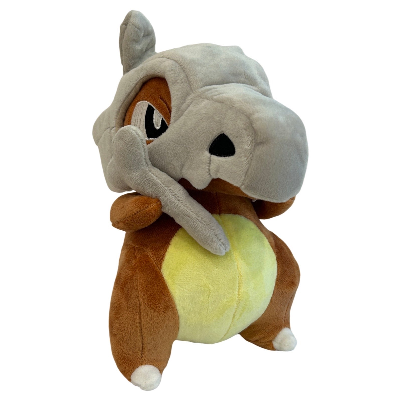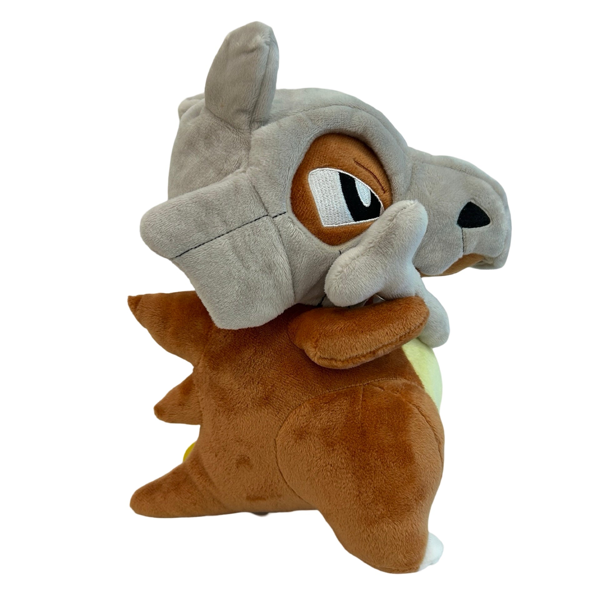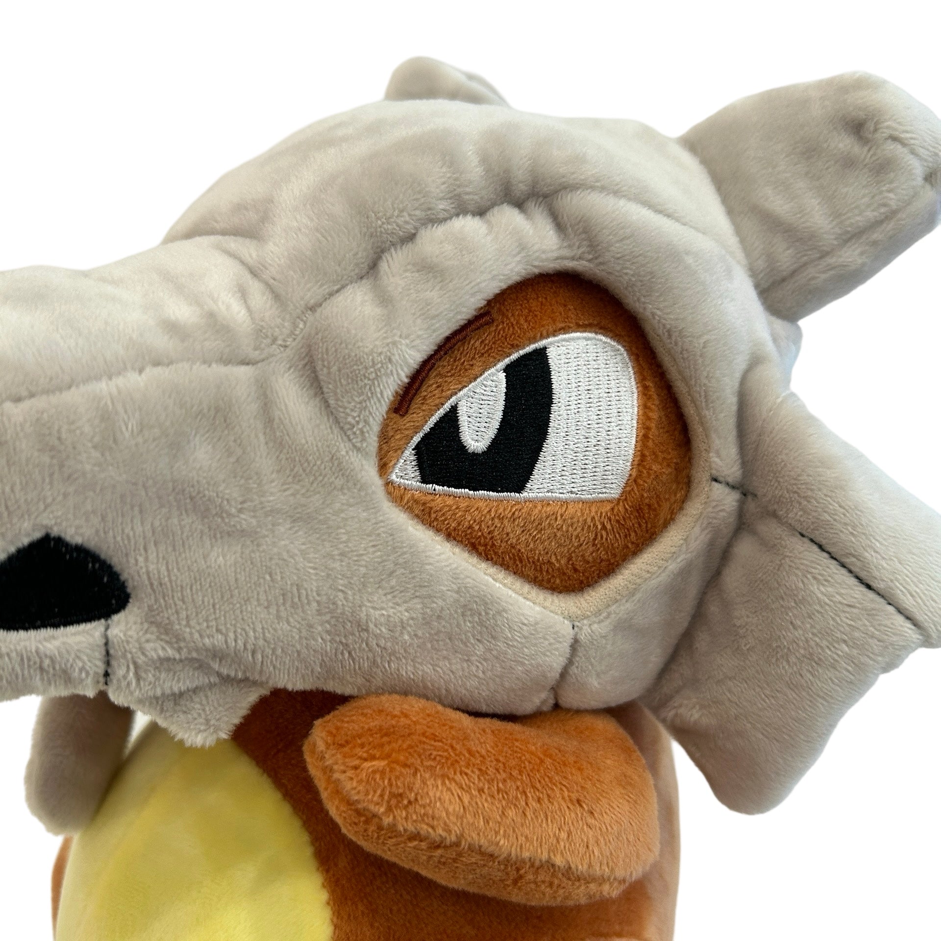 Never let this Pokémon be lonely again snuggled up with you! Cubone plush stands upright and includes its iconic bone and skull helmet. Soft to the touch with embroidered eyes. Measures 9” tall. Helmet is sewn on.