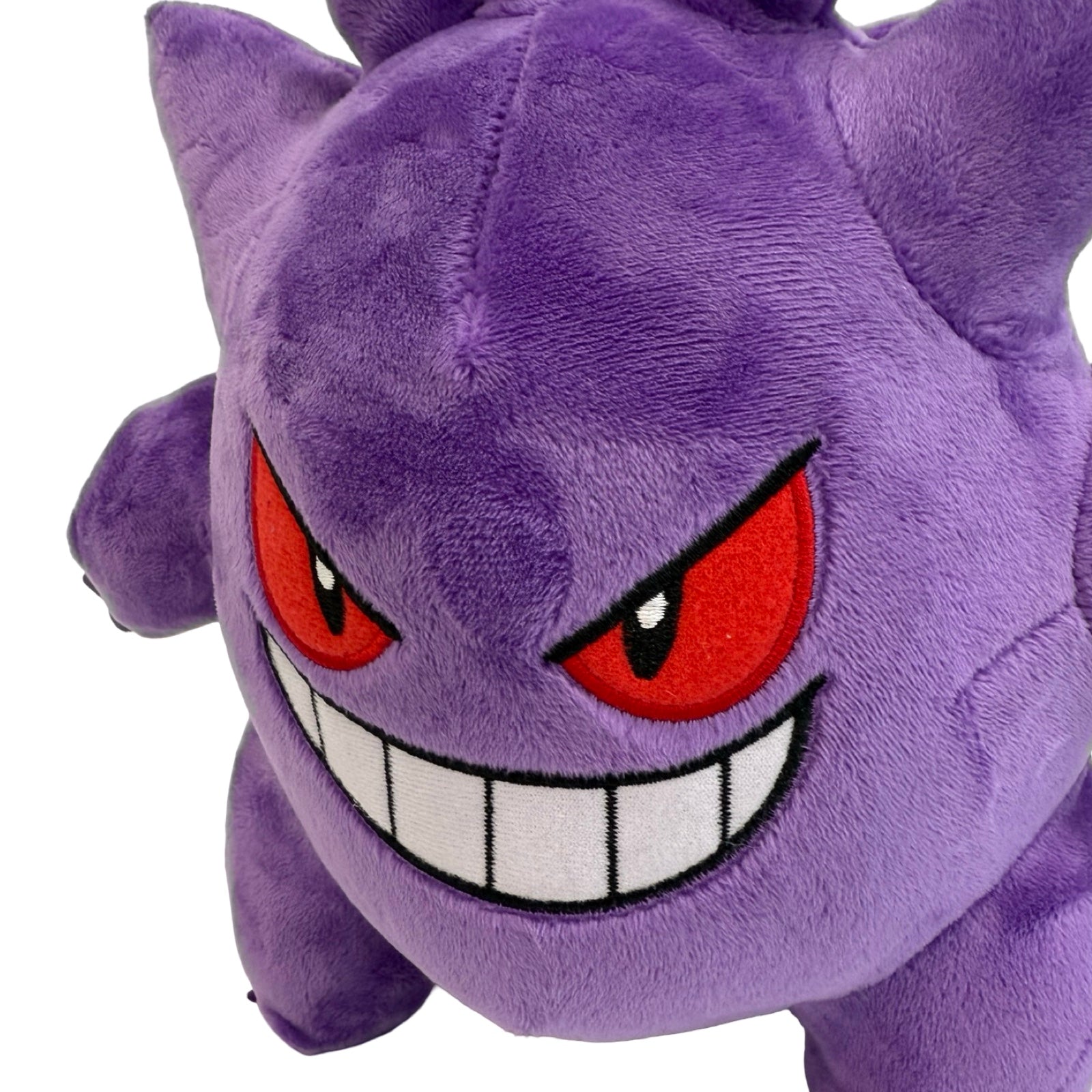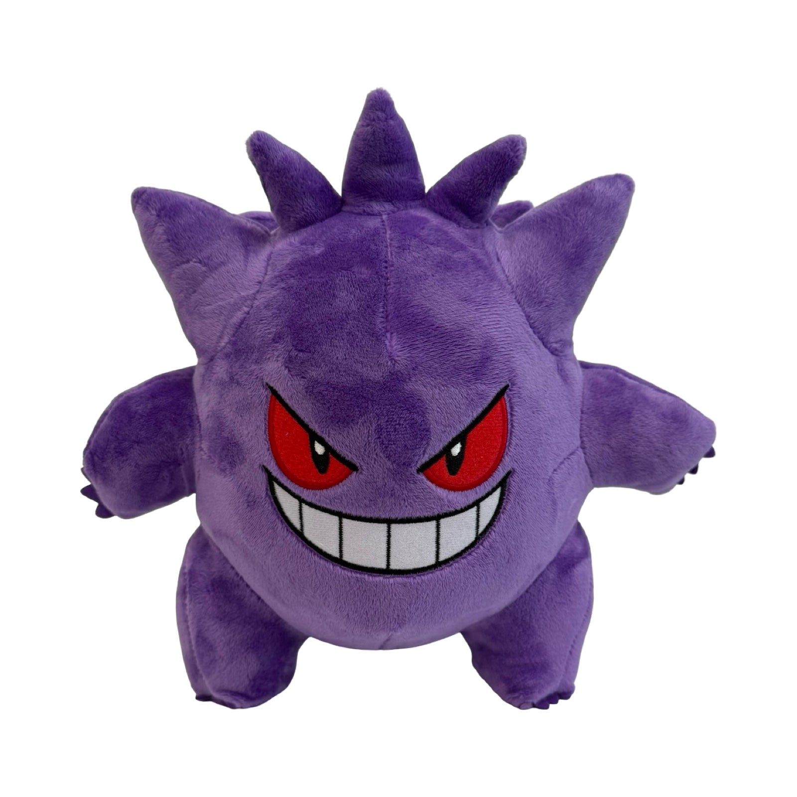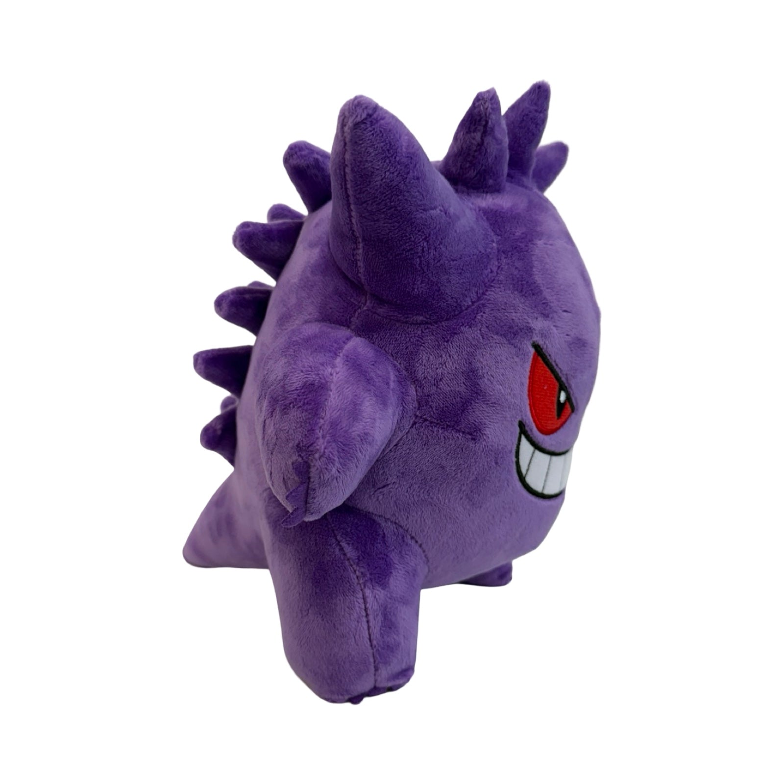 This Gengar plush stands 9" tall with minky soft fabric and embroidered details. Stands upright on it's own.