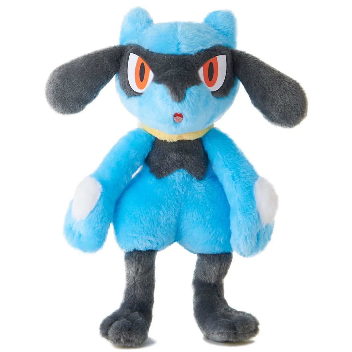 Super soft Riolu plush measures about 10" tall and is in a standing pose. Minky soft fur with hard bead eyes and embroidered details. High-quality collector plush.