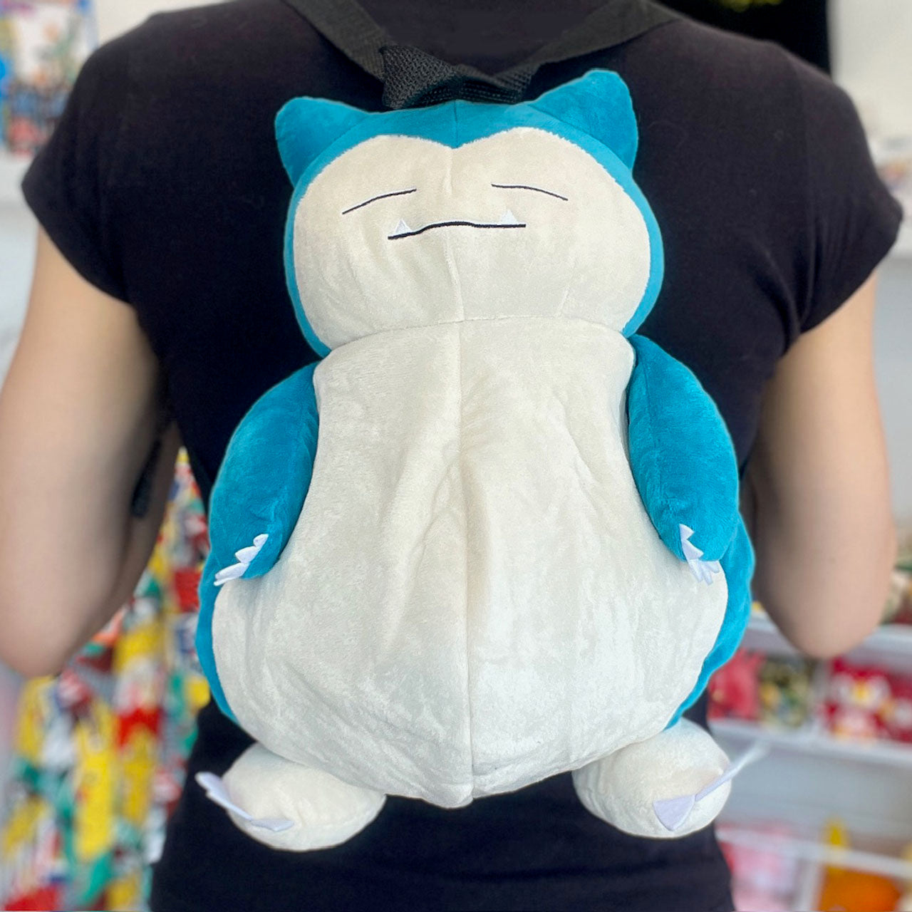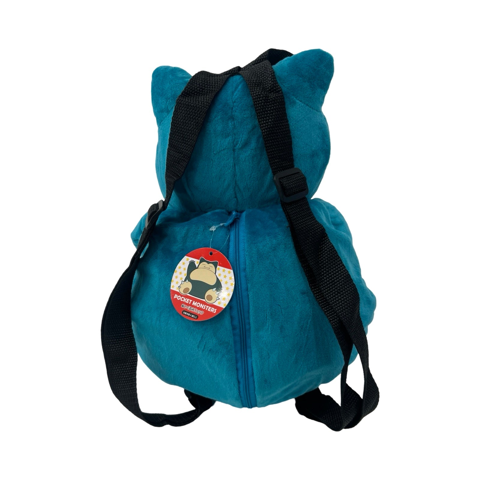 Stash your snacks, waterbottle, and Poké-flute in this plush backpack of sleepiest boi Snorlax! Minky soft plush backpack includes a zippered compartment on the back and adjustable, nylon straps. Measures about 13" tall. Zippered opening measures about 9" long.