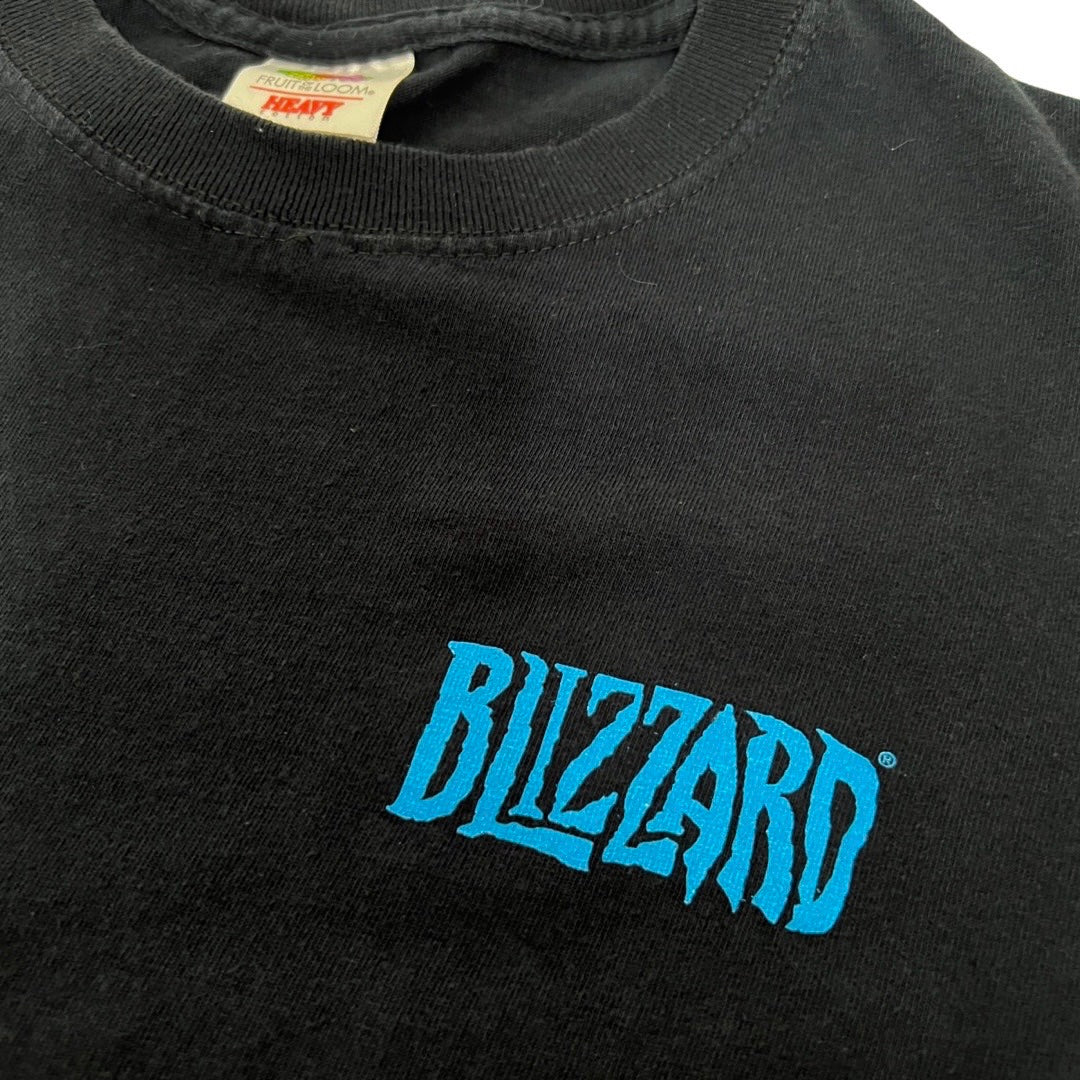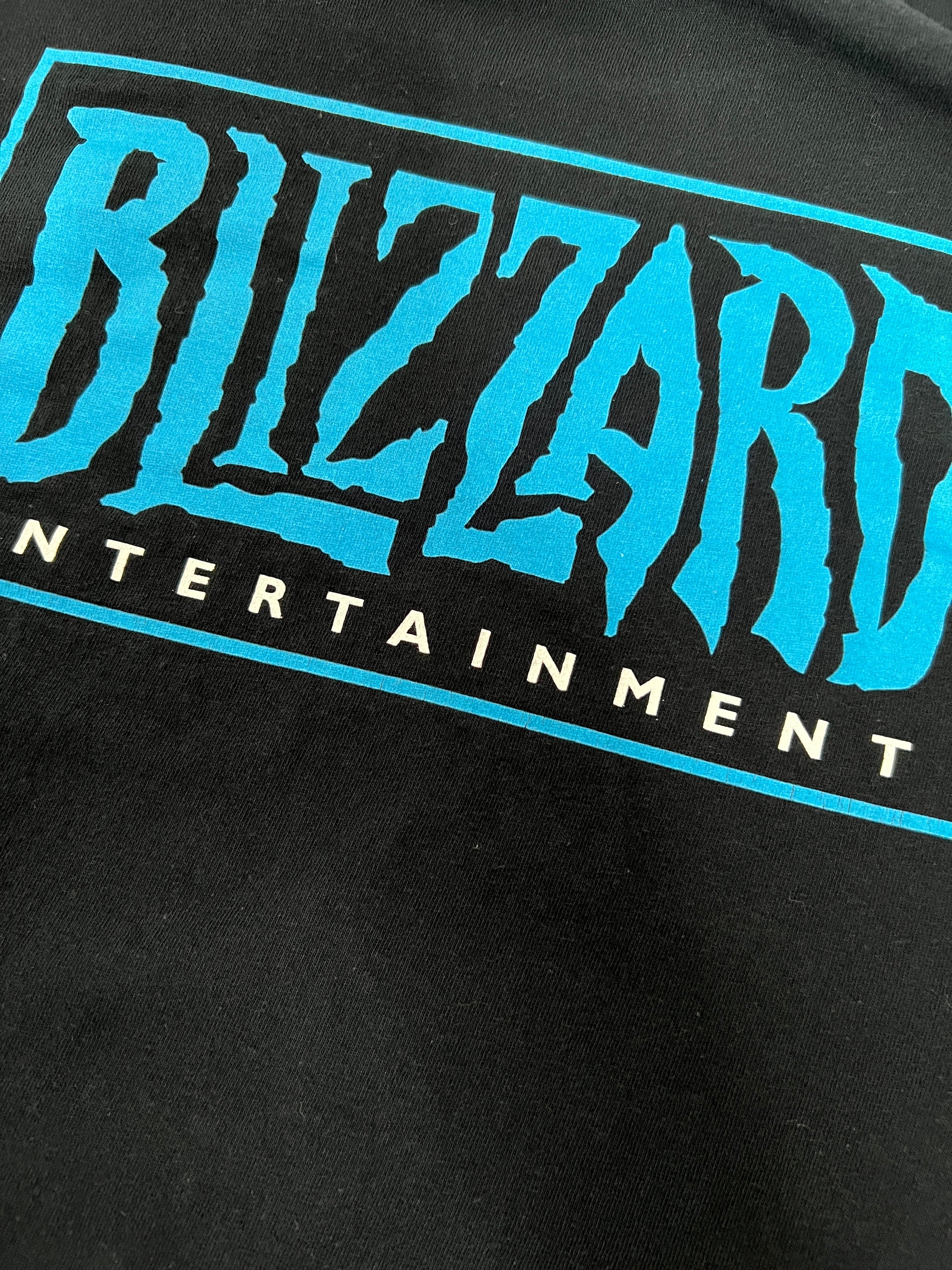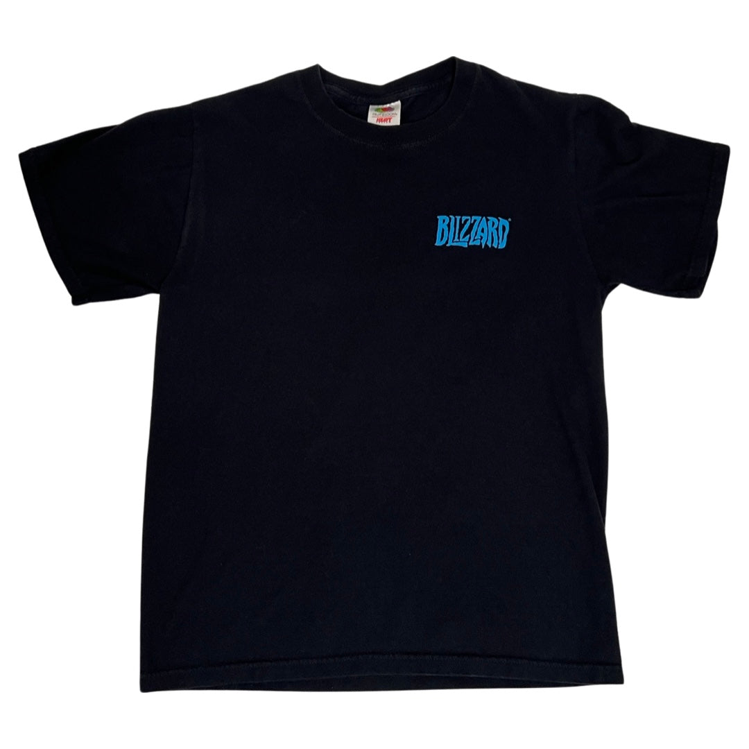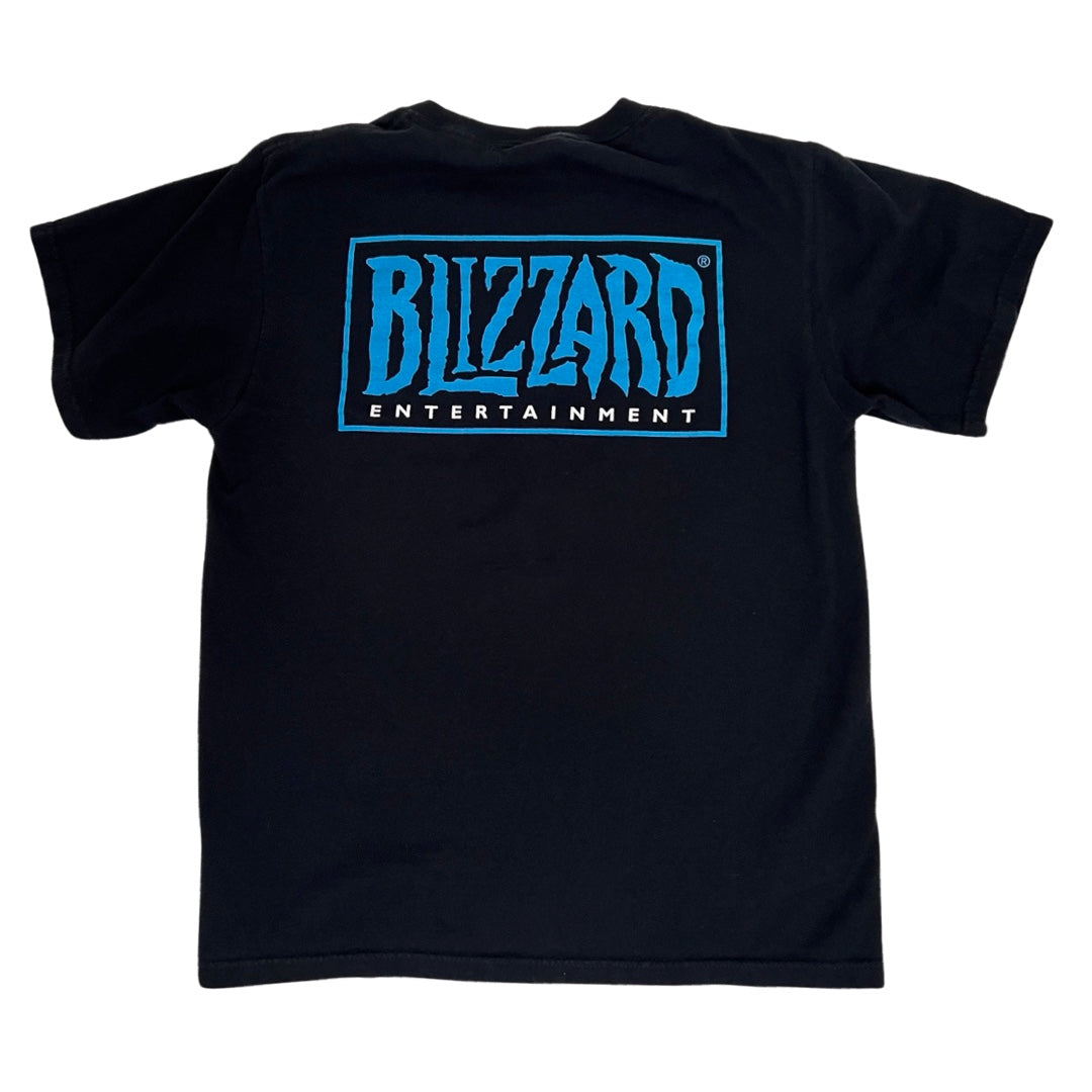Showcase your love for the studio behind some of the most iconic gaming IPs of all time! Blue Blizzard logo graphic on the front and back of black t-shirt. In good condition. No major fading on screenprint cracking. Unisex/Men's size small. Circa ~2010