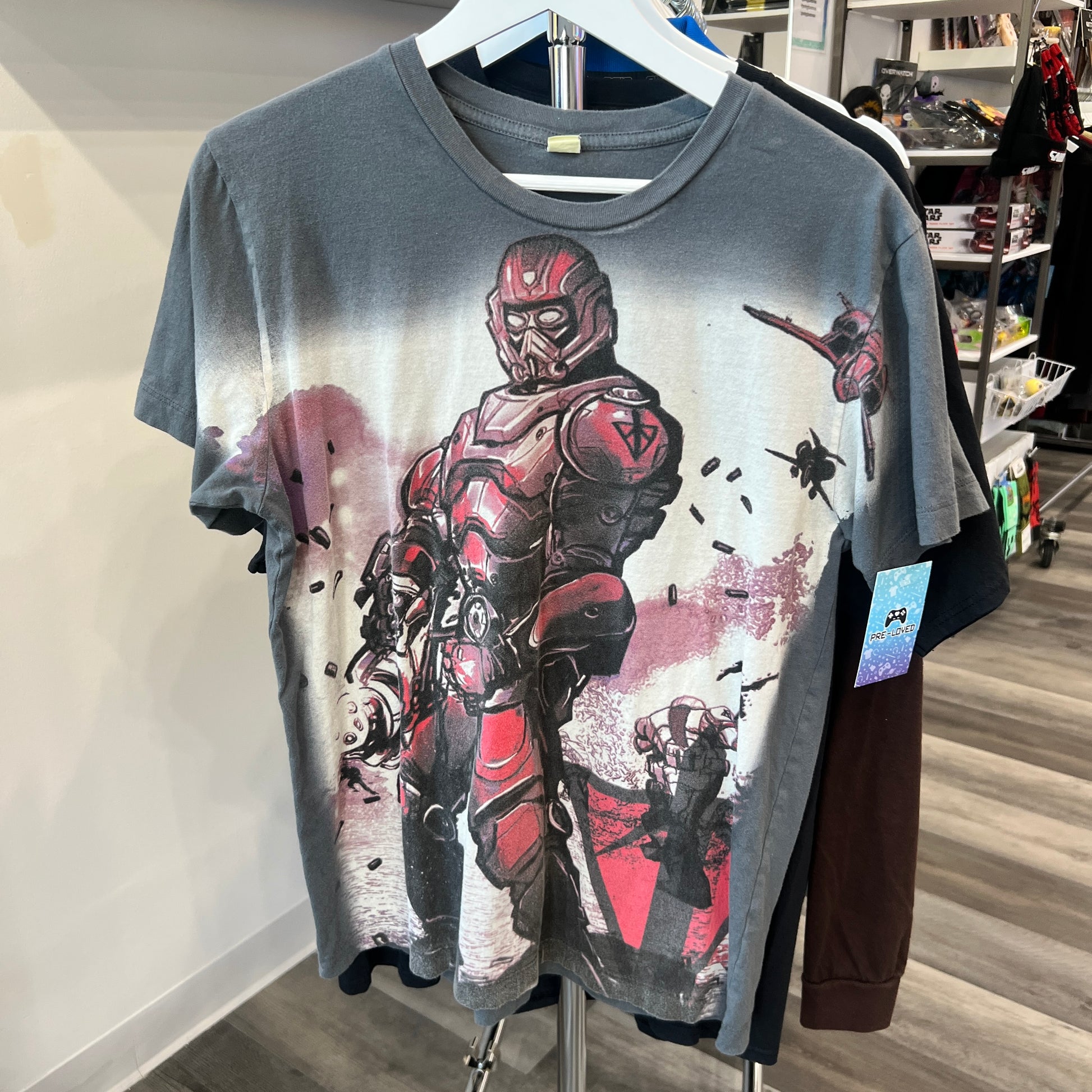 Rad Planetside 2 tee with oversized graphic on front and logo on back. Some wear fro wash. Marked men's M. Chest: 19" Length: 27"
