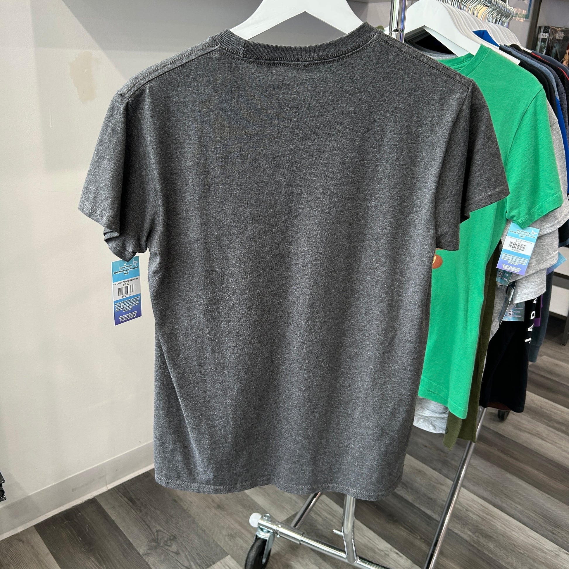 Charcoal grey tee with Pokémon Quest graphic on front. Good condition, light fading from wash. Marked men's small. Measurements laying flat: Chest: 17" Length: 25.5"