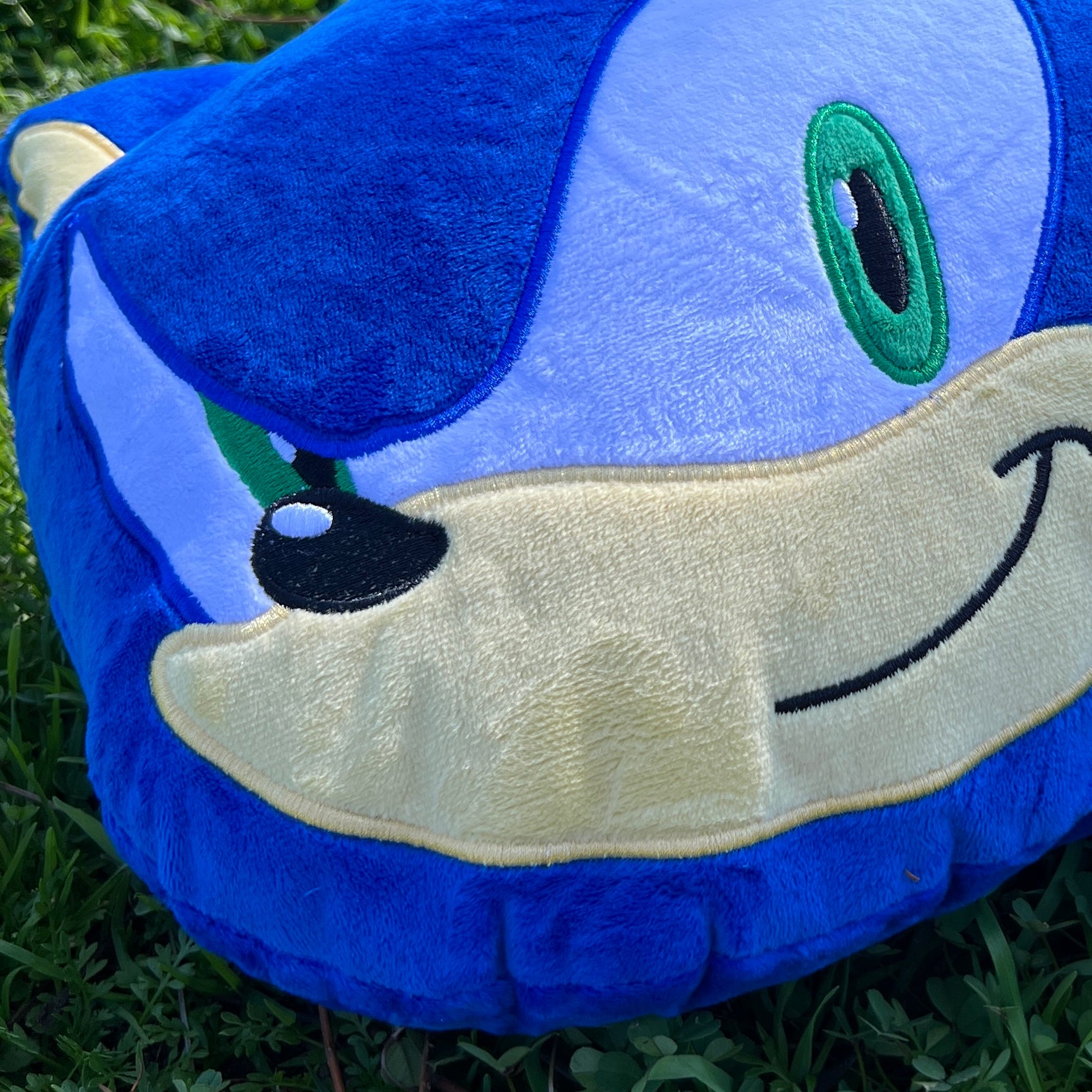 Cozy up with your favorite Sonic game snuggled against this Sonic cushion! Soft plush cushion measures 16" (at widest point) x 11" tall x 2.5" wide.