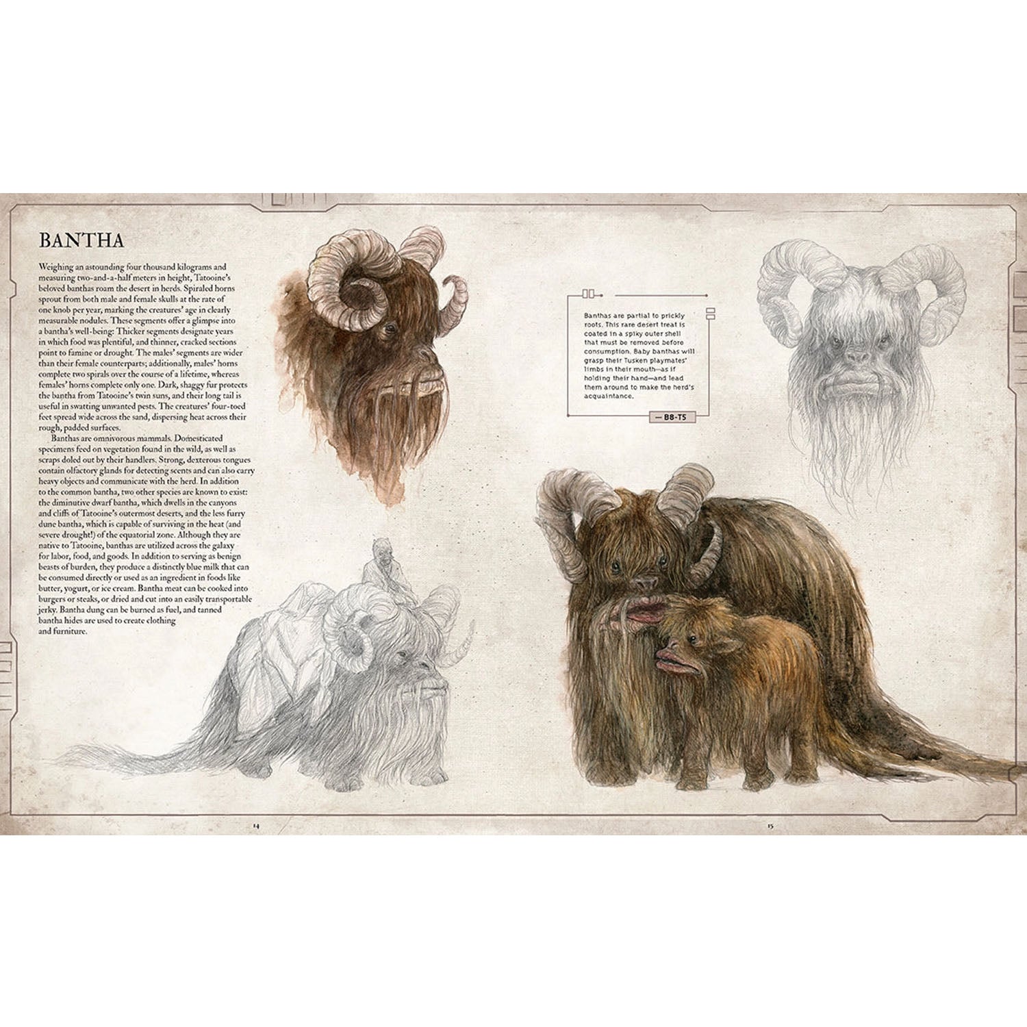 Dive into the lives, habitats, and behaviors of the non-sentient inhabitants from across the galaxy through original, detailed illustrations and insightful text, to include wampas, banthas, porgs, the fearsome Mythosaur, and so much more.