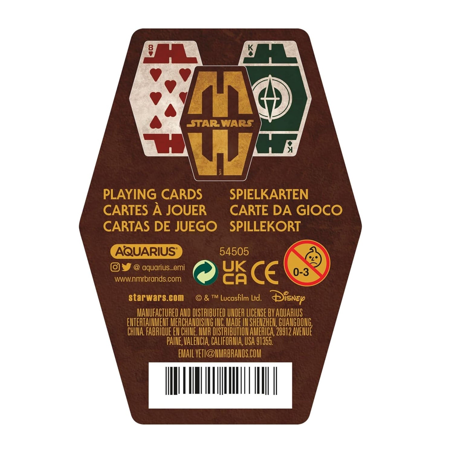 We can't promise you'll win any ships playing with these but we can hope! Star Wars playing cards are a traditional 52-card deck designed to look like a Sabacc deck. Packed inside a sturdy paperboard box. For ages 4+.