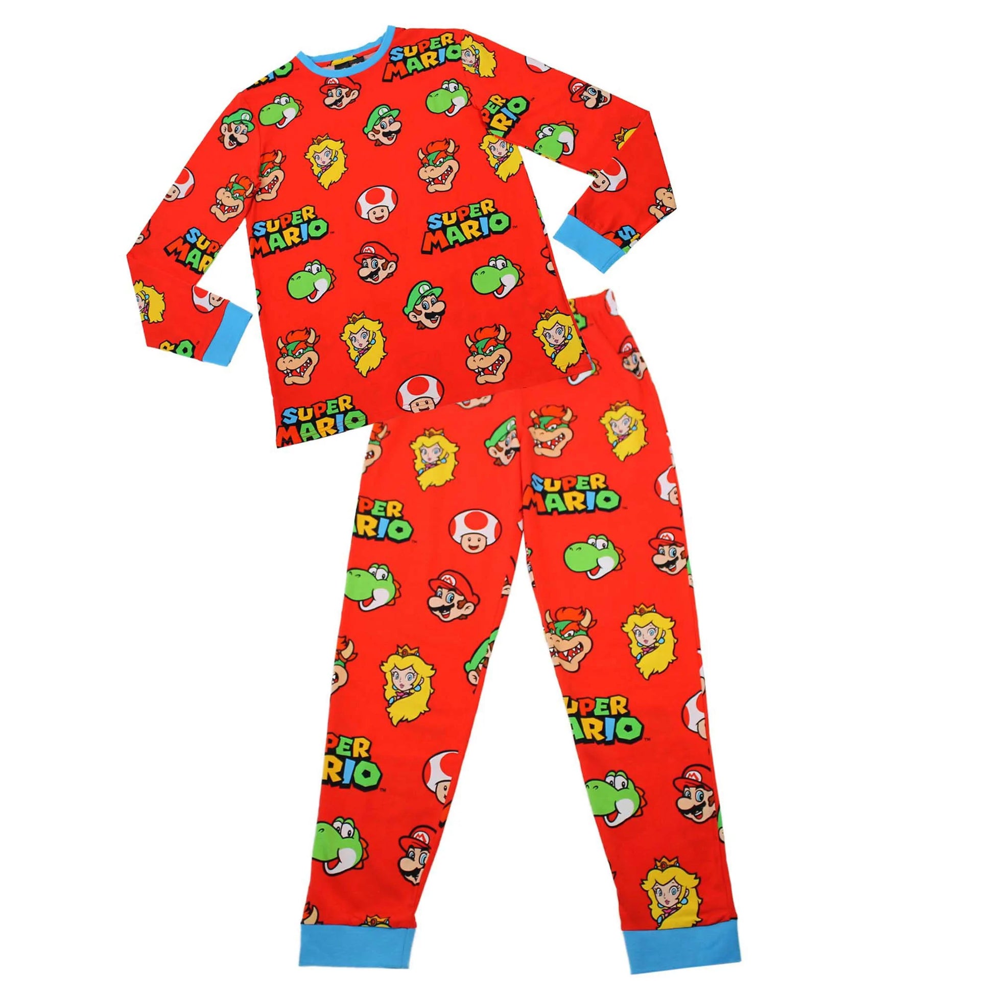 Looking for the perfect outfit to cozy up with your Nintendo Switch? We got chu. This super bright and fun Super Mario pajama set includes a long sleeve top and matching bottoms. Elastic waistband. 95% Cotton, 5% Elastane. Listed in men's sizes.
