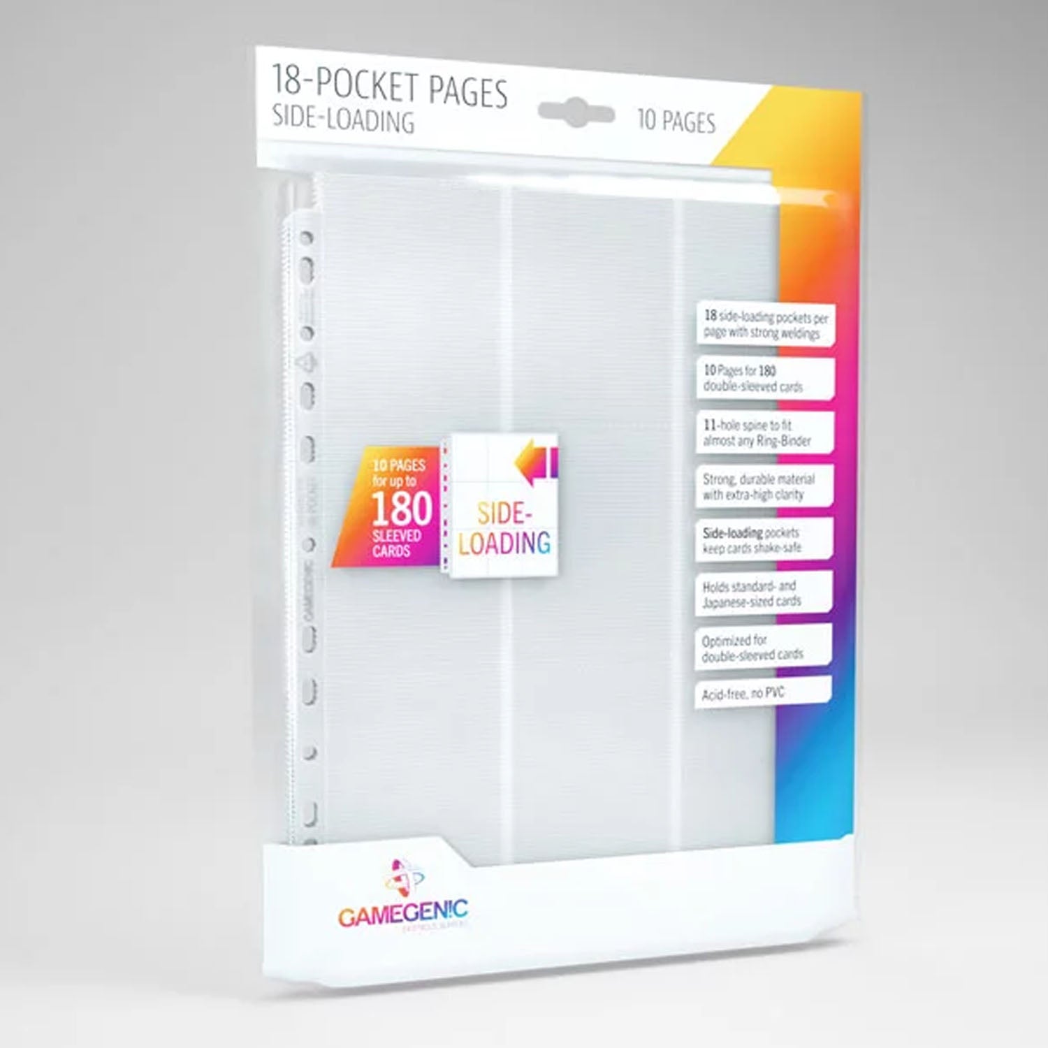 Need some extra pages for your card binder? This pack includes ten pages of 9-pocket card pages (holds up to 18 cards per page). 11-hole spine fits most standard card binders. Side-loading pockets. Durable material with extra-high clarity. Acid free, non PVC.